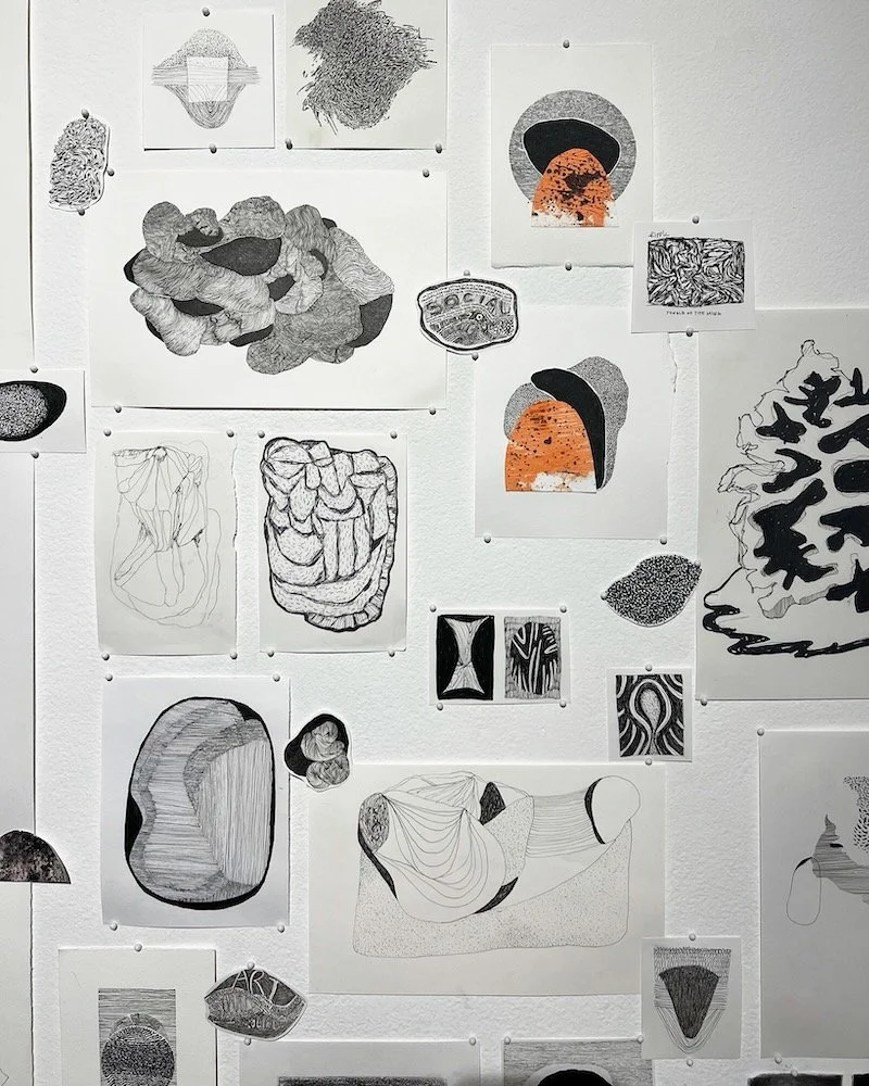 From there, I reached out to artists and made inquiries about the work they had been making since 2020. In some cases, I made studio visits and met with artists one-on-one to select (and sometimes create!) work for the exhibition. This was the most exciting part of the curatorial process. I enjoyed seeing artists’ studios, discovering work in their archives, and listening to their stories. (Thank you to the artists who opened up their studios to me–it is perhaps one of the most generous gifts to share.)