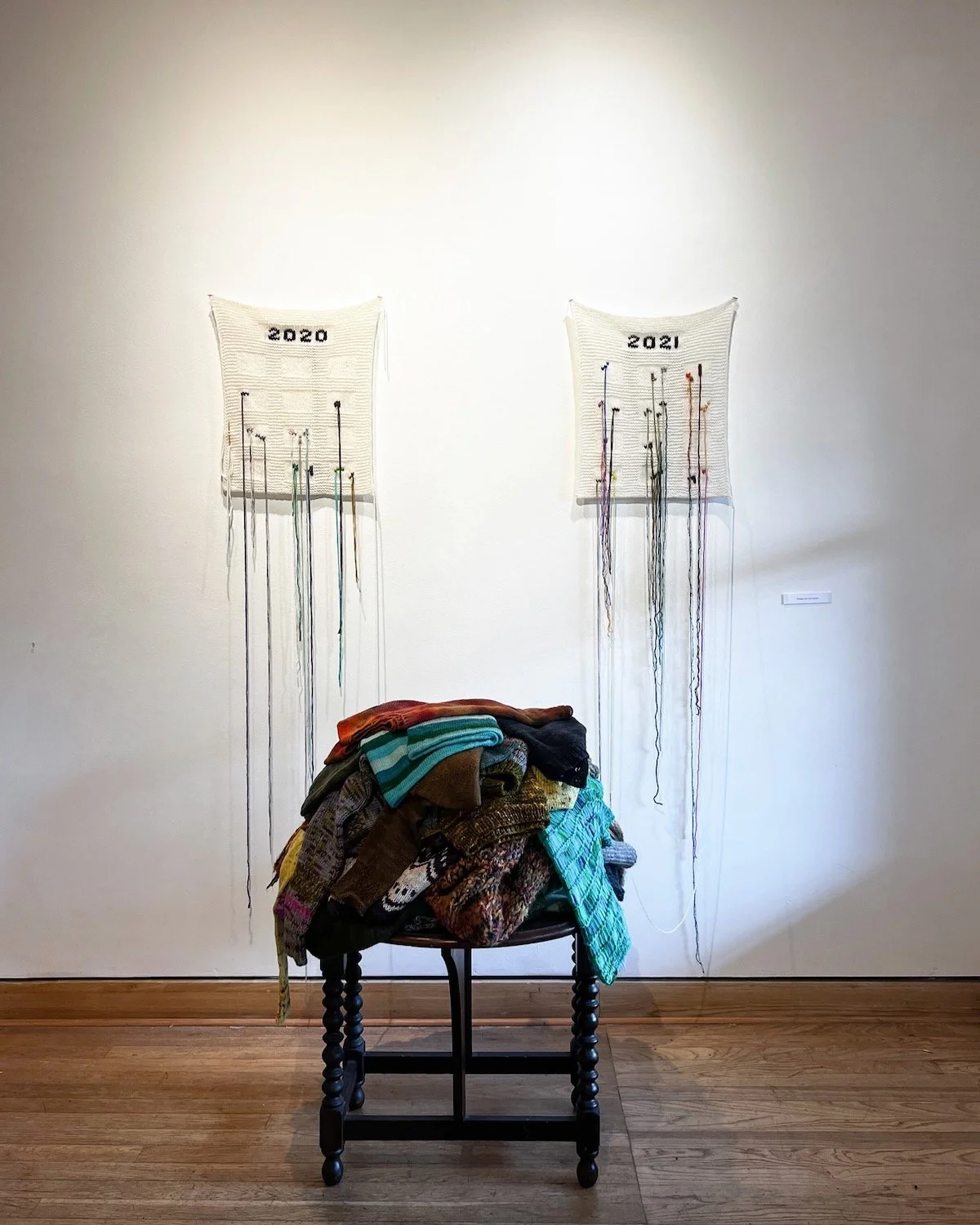 Jen Bootwala, Time, like yarn, 2022, 2 yarn calendars, 30 sweaters.